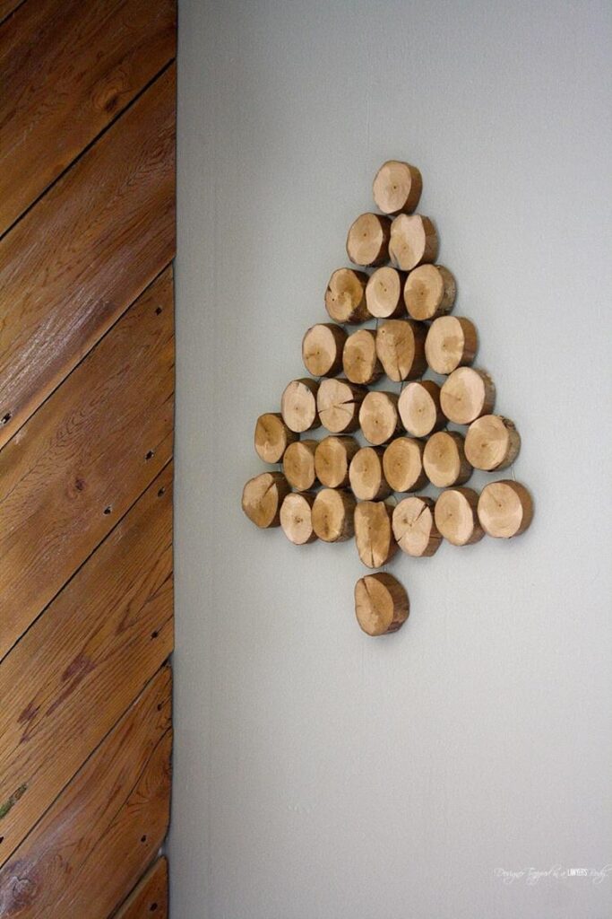 Con retazos de troncos de árboles también pues diseñar un hermoso árbol de navidad en la pared