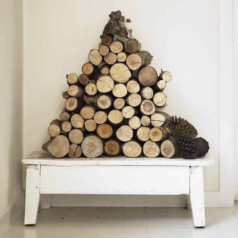 Diseño de un árbol de navidad elaborado con troncos de árboles
