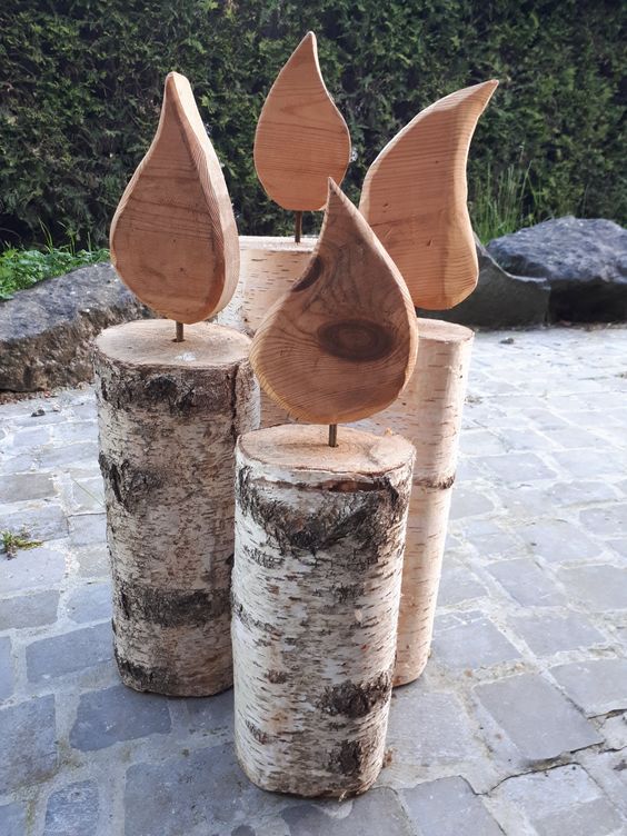 Veleros de navidad elaborados con retazos de troncos de ramas de un árbol